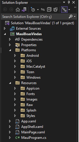 Selecione Visual C#, o template .NET MAUI App e Informe o nome MauiBoasVindas ;
