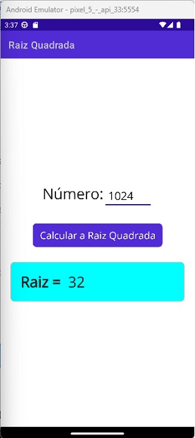Nossa View vai precisar informar um número, ter um botão de comando que ao ser clicado irá disparar uma ação para realizar o cálculo da raiz quadrada e deverá exibir o resultado.
