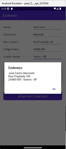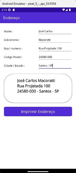 Para ilustrar vamos nos basear em uma aplicação .NET MAUI bem simples que vai permitir informar o nome, sobrenome, rua codigo postal e cidade e durante a entrada dos dados a aplicação vai exibir em um Frame o endereço montado e vai ter também um botão que permite imprimir o endereço, que no nosso exemplo, vai usar um DisplayAlert para exibir o endereço completo.