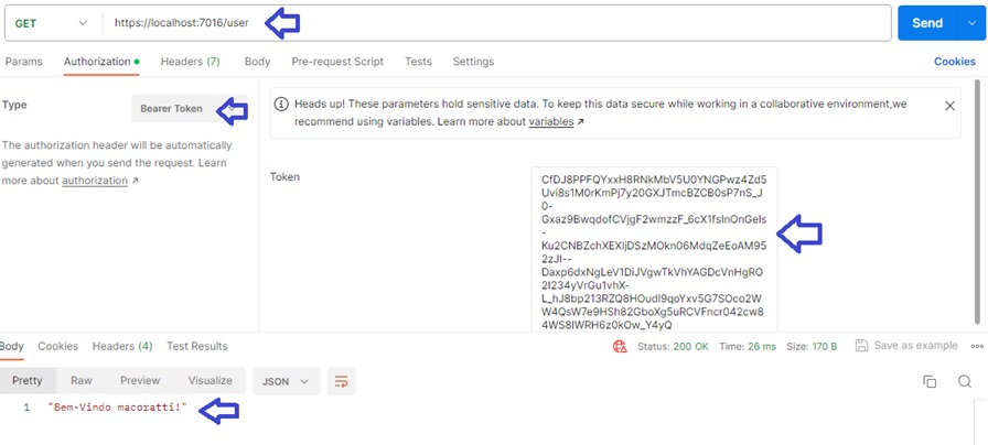 Observe que definimos o cabeçalho Authorization onde estamos enviando o token de acesso (não é um token JWT).