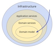 entidades, agregados, serviços de domínio e interfaces de aplicação.