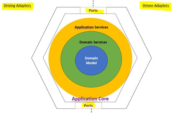 Agora focando na aplicação que é o Core podemos destacar o modelo de dominio com as regras de negócio da aplicação , os serviços do dominio e os serviços da aplicação onde podemos definir os casos de uso orquestrando o dominio.