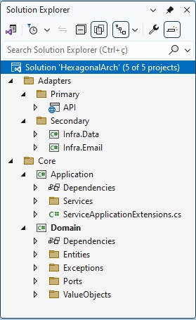 Pegue o código do projeto aqui: https://github.com/macoratti/HexagonalArch