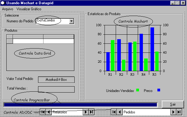 Iremos mostrar como vincular o Adodc a um Mschart a um DataGrid e a um DataCombo e ainda como realizar totalizações em uma base de dados e algumas perfumarias como : usar um barra de progresso e um maskeditbox.