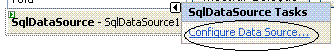 | Selecione o controle SqlDataSource1 e clique na opção Configure Data Source... | ![]() |
