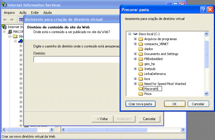 Vamos criar um diretório virtual chamado Macoratti no IIS em um sistema Operacional que usa Windows XP.