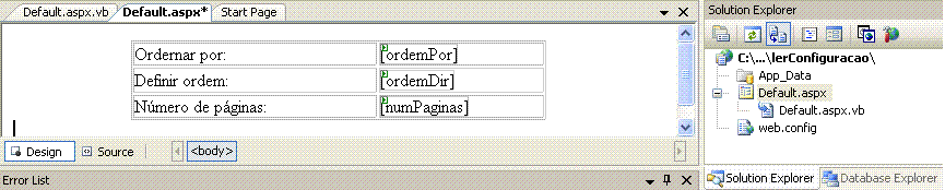 Você já deve saber que ao criar um novo site Web no Visual Web Developer é criado por padrão um arquivo de configuração chamado web.config. Este pode ser usado para armazenar configurações personalizadas para sua aplicação ASP.NET.