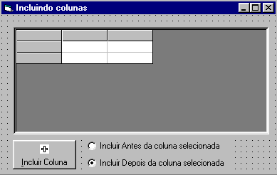 Mais uma vez estamos falando sobre o controle MSFlexGrid . Agora vamos mostrar como incluir uma coluna na grade. O padrão do VB é incluir a coluna no fim da grade a partir da última coluna . Vou mostrar como você pode incluir uma coluna em outra posição.