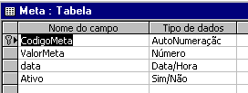 A mesma coisa fazemos para exibir o valor da meta . Vinculamos um adodc(adodcmeta) 'a tabela meta e definimos a propriedade RecordSource com a seguinte instrução SQL: