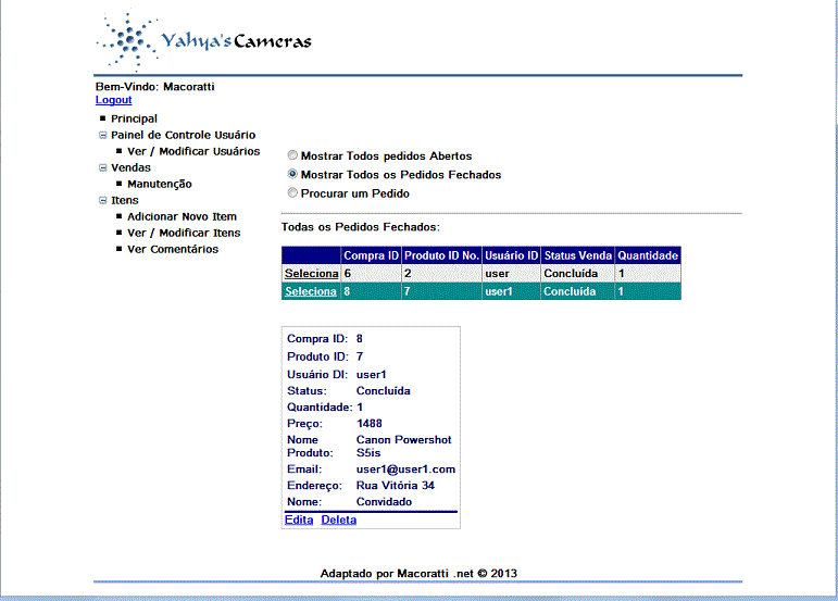 Sistema para controle de Vendas com relatório de vendas e inventário , Controle de Pedidos , Clientes e Fornecedores. Sistema completo com os fontes e relatórios.