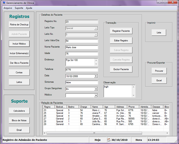 Controla informações básicas de pacientes com recursos para incluir , alterar, excluir , procurar e exibir dados dos pacientes. (Atenção este sistema usa uma base de dados SQL Server. - O script para criar a base de dados está incluso).
