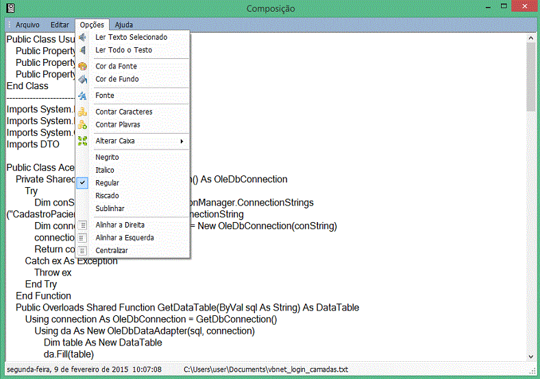 Um editor com as funções básicas usando o componente RichtTextBox completo feito no Visual Basic 2005 Express.