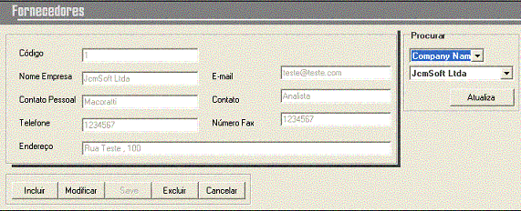 Ao iniciar a aplicação será exibida a tela principal do sistema. Para exibir os itens cadastrados basta clicar no botão - Procurar. Abaixo um exemplo da tela com alguns itens exibidos.